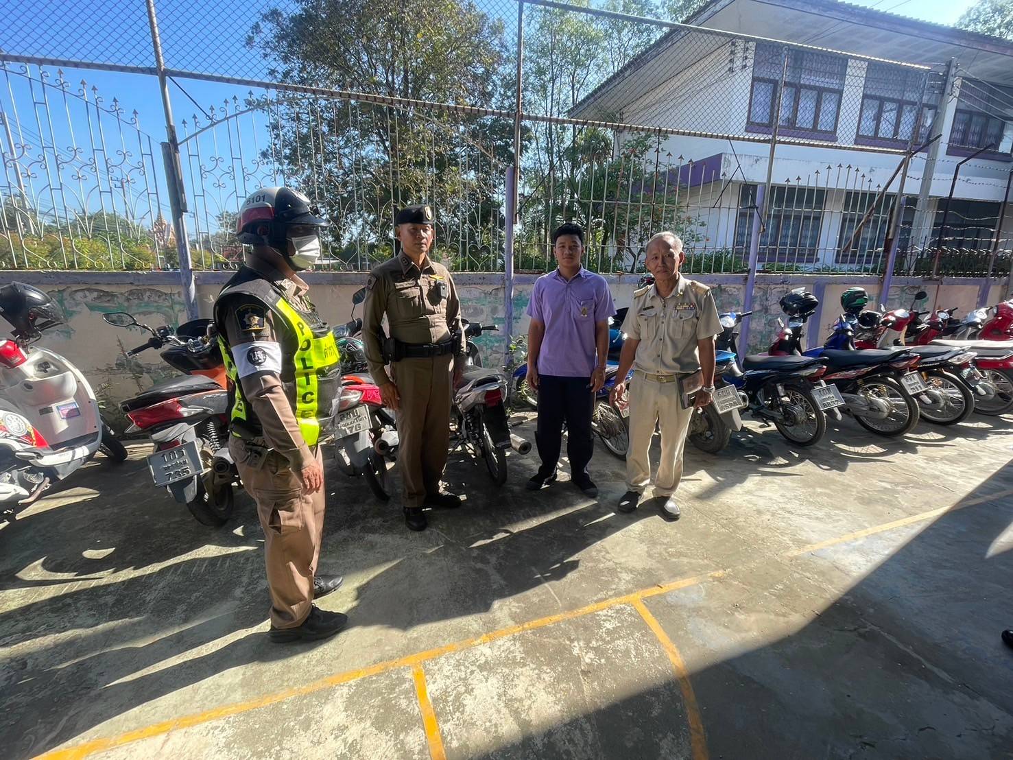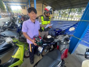 ตรวจสภาพรถจักรยานยนต์ที่นักเรียนขับขี่มาเรียน,