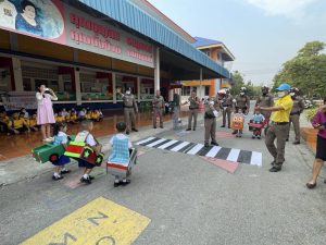 🚦พร้อมกำลังเจ้าหน้าที่ตำรวจจราจร และจิตอาสาจราจรเป็นวิทยากรบรรยาย ให้ความรู้เกี่ยวกับกิจกรรมสวมหมวกนิรภัยป้องกันอุบัติเหตุในกลุ่มเด็ก ร่วมรณรงค์ขับขี่ปลอดภัย สร้างวินัยจราจร ให้แก่ ครู นักเรียนโรงเรียนวัดสามง่าม พร้อมทั้งรณรงค์ขับขี่ปลอดภัยสวมหมวกนิรภัย 100% การข้ามถนนในทางข้าม เพื่อเป็นการป้องกันและลดการเกิดอุบัติเหตุ