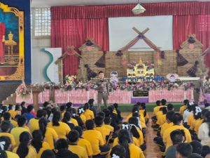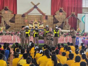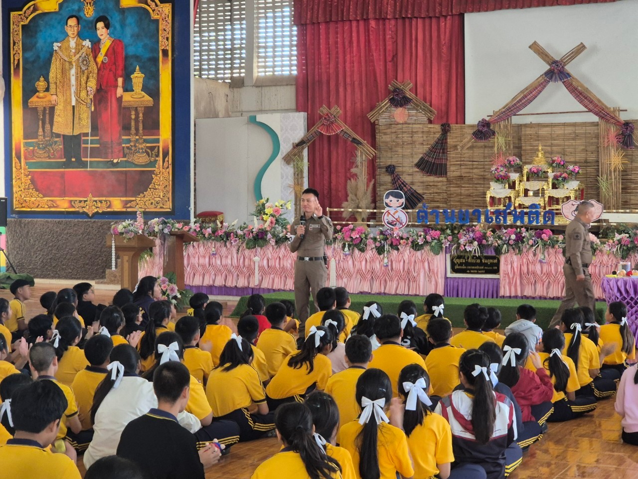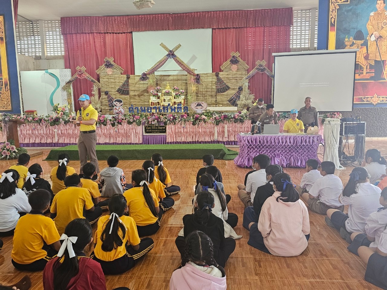 ออกบรรยายความรู้ด้านการจราจรและป้องกันยาเสพติดและการหนี ซ่อน สู้ ให้กับนักเรียน เพื่อเป็นการเสริมความรู้ บริเวณโรงเรียนวัดสามง่าม