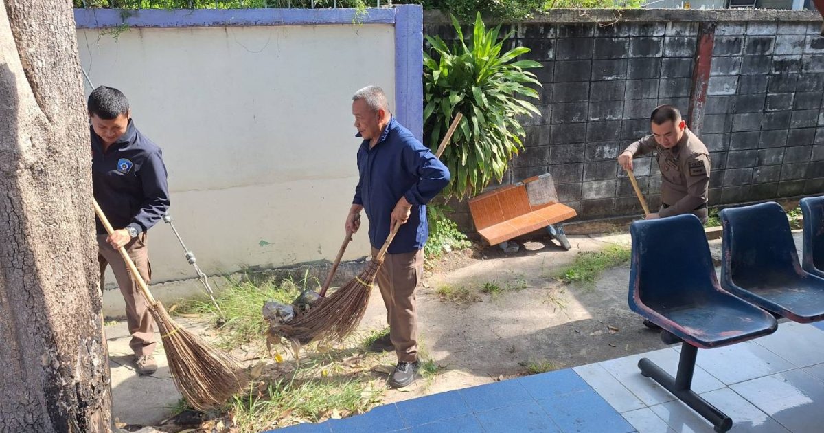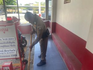 ทำความสะอาดที่ทำการ แลัะบริเวณโดยรอบ เพื่อปรับปรุงการให้บริการประชาชนที่มาใช้บริการบน สภ.ดอนตูม